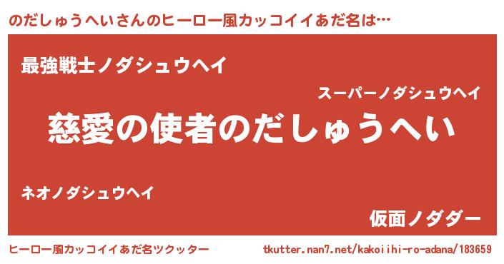 | 伝説のあだ名 | 『魔王と互角に渡り合う技術者のだしゅうへい』 |