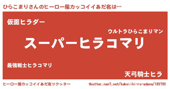 | 女子向けラノベタイトル風あだ名 | 『(仮)ひらこまりのやんごとなき事情』 |