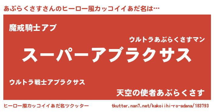 | 男性向けラノベタイトル風あだ名 | 『アブラクサスアートオンライン』 |