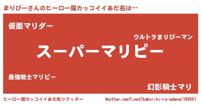 | 男性向けラノベタイトル風あだ名 | 『まりぴーの憂鬱』『緋弾のマリピー』 |
