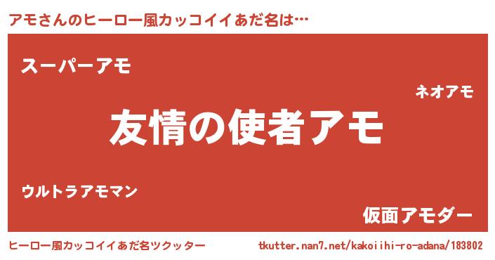 | 男性向けラノベタイトル風あだ名 | 『おまえをオタクにしてやるから、俺をアモにしてくれ! 』 |