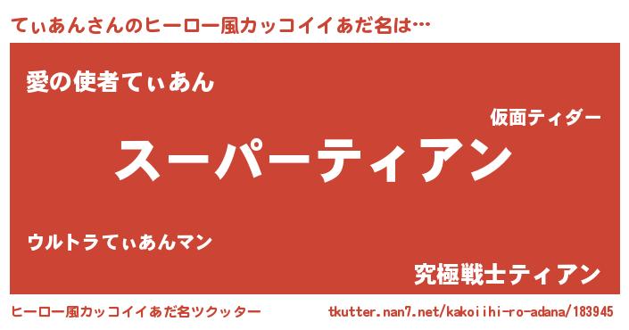 | 意味不明あだ名 | 『ペロリンてぃあん』『自称てぃあん』 |