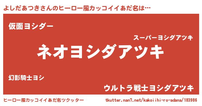 | ヘコむあだ名 | 『よしだあつき(笑)』『よしふぇ~』 |