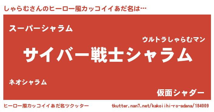 | 男性向けラノベタイトル風あだ名 | 『Re:しゃらむから始める異世界生活』 |
