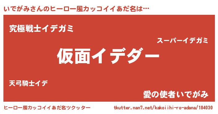 | 男性向けラノベタイトル風あだ名 | 『この素晴らしい世界にいでがみを!』 |