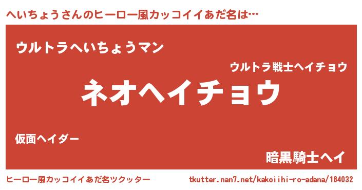 | 意味不明あだ名 | 『永久保存へいちょう』『自称へいちょう』 |