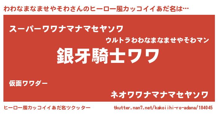 | ポケモン風あだ名 | 『ヒワワナマナマセヤソワ』『ワワチュウ』 |