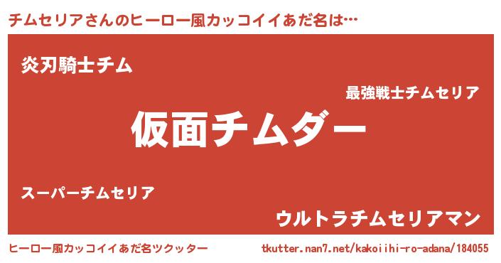 | 男性向けラノベタイトル風あだ名 | 『この素晴らしい世界にチムセリアを!』 |