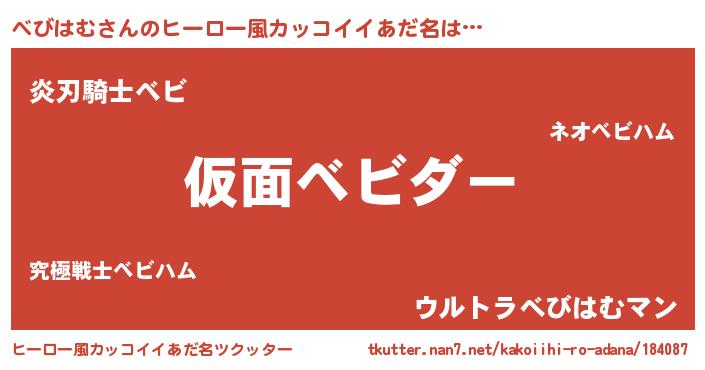 | 男性向けラノベタイトル風あだ名 | 『この素晴らしい世界にべびはむを!』 |