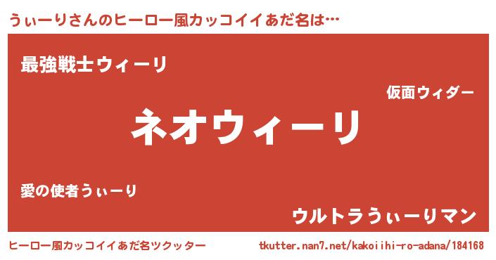 | 意味不明あだ名 | 『永久保存うぃーり』『自称うぃーり』 |