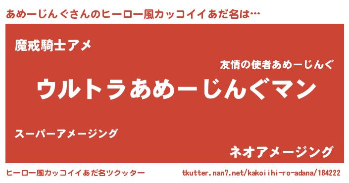 あめーじんぐさんのヒーロー風カッコイイあだ名をツクッター!