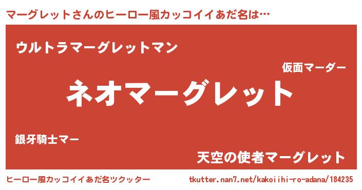 | 意味不明あだ名 | 『永久保存マーグレット』 |