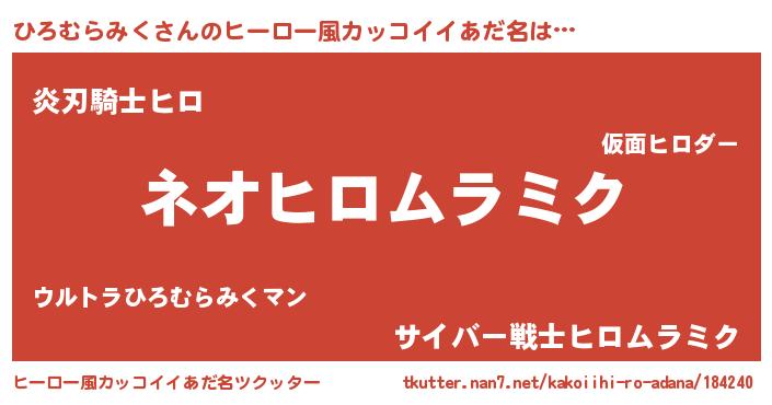| 意味不明あだ名 | 『永久保存ひろむらみく』 |