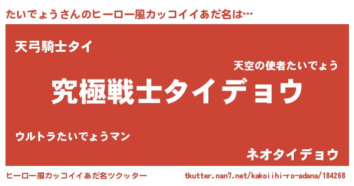 | 男性向けラノベタイトル風あだ名 | 『Re:たいでょうから始める異世界生活』 |