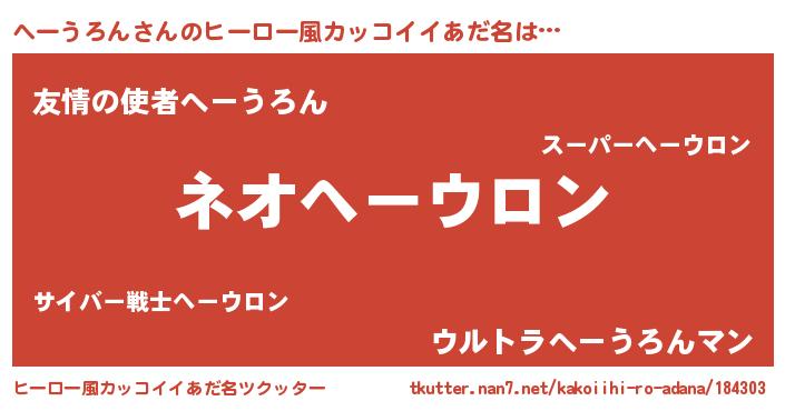 | 胡散臭い通販商品みたいなあだ名 | 『前代未聞の健康食品…その名も「へーうろん」』 |