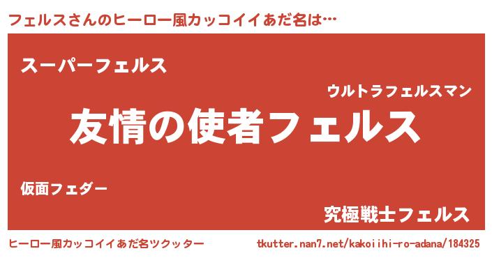 | 男性向けラノベタイトル風あだ名 | 『おまえをオタクにしてやるから、俺をフェルスにしてくれ! 』 |