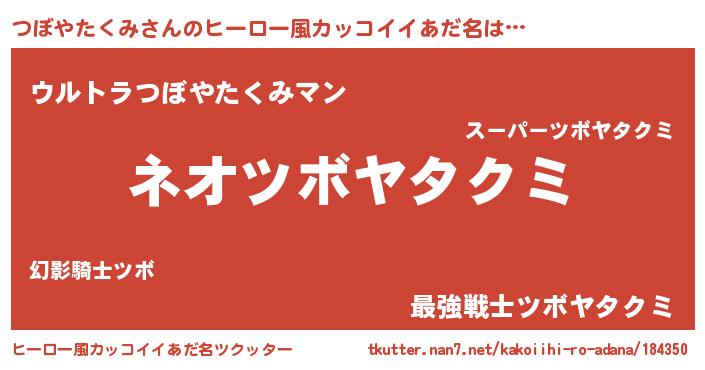 | ヘコむあだ名 | 『つぼやたくみ(遠い目)』『豆乳』 |