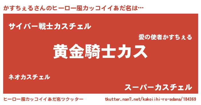 | 男性向けラノベタイトル風あだ名 | 『ダンジョンにかすちぇるを求めるのは間違っているだろうか』 |