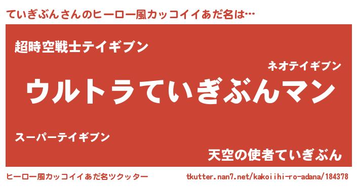 | ファンタジー風あだ名 | 『エターナルテイギブンー』『ゼテイトゥ』 |