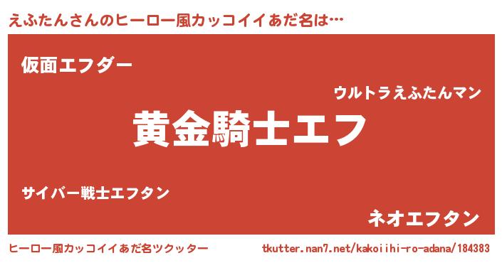| 男性向けラノベタイトル風あだ名 | 『ダンジョンにえふたんを求めるのは間違っているだろうか』 |