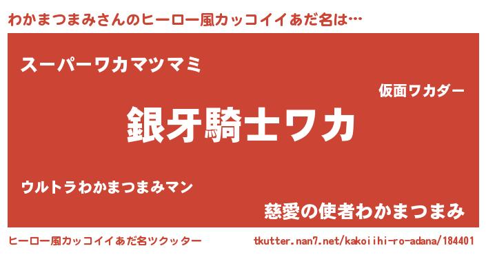 | ポケモン風あだ名 | 『ワカキング』『ヒワカマツマミ』 |