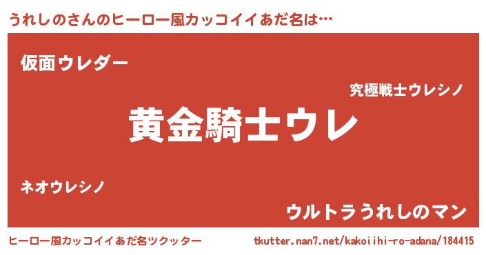 | ポケモン風あだ名 | 『ウレゴンZ』『ヒウレシノ』 |