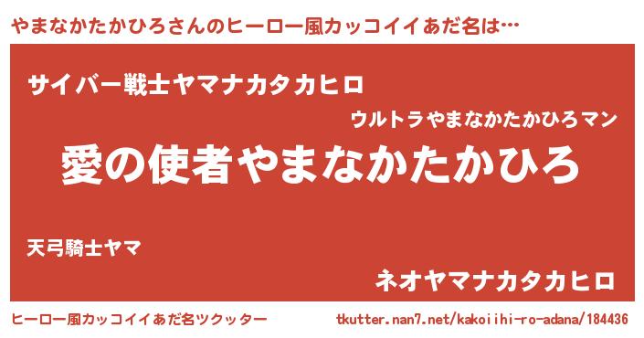| 男性向けラノベタイトル風あだ名 | 『転生したらやまなかたかひろだった件』 |