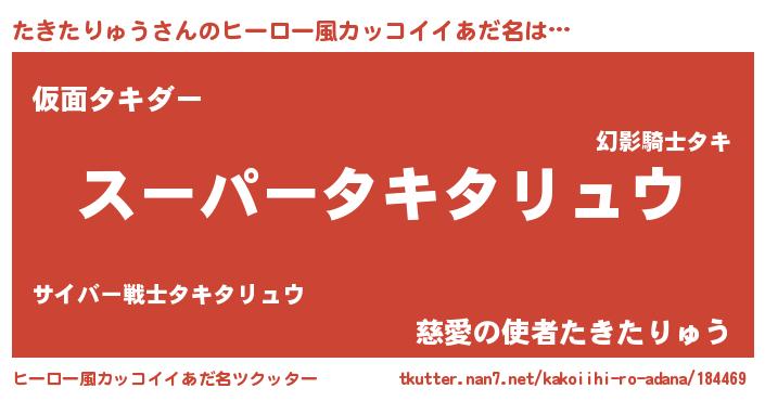 | 女子向けラノベタイトル風あだ名 | 『たきたりゅう姫と円卓の騎士』 |