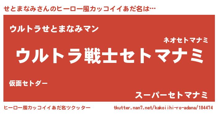| 意味不明あだ名 | 『自称せとまなみ』『ペロリンせとまなみ』 |