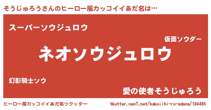 | 男性向けラノベタイトル風あだ名 | 『そうじゅろうに滅ぼされるだけの簡単なお仕事です』 |