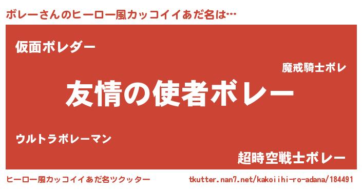 | 男性向けラノベタイトル風あだ名 | 『おまえをオタクにしてやるから、俺をボレーにしてくれ! 』 |
