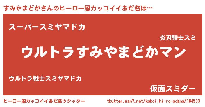 | 男性向けラノベタイトル風あだ名 | 『うちの娘の為ならば、俺はもしかしたらすみやまどかも倒せるかもしれない。』 |
