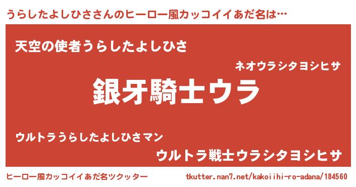 | 男性向けラノベタイトル風あだ名 | 『転生したらうらしたよしひさだった件』 |