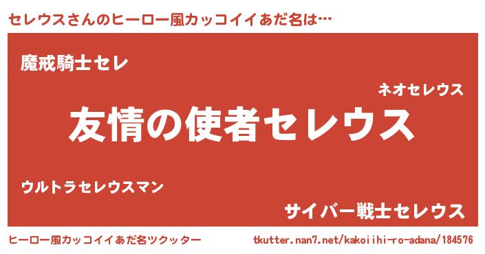 | 男性向けラノベタイトル風あだ名 | 『緋弾のセレウス』『セレウススレイヤー』 |