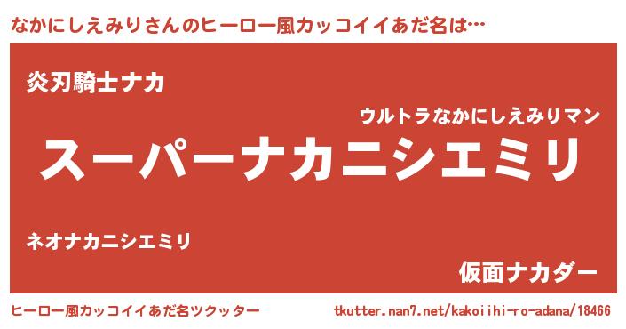 | 胡散臭い通販商品みたいなあだ名 | 『必ず成功する霊験あらたかなお札…その名も「なかにしえみり」』 |