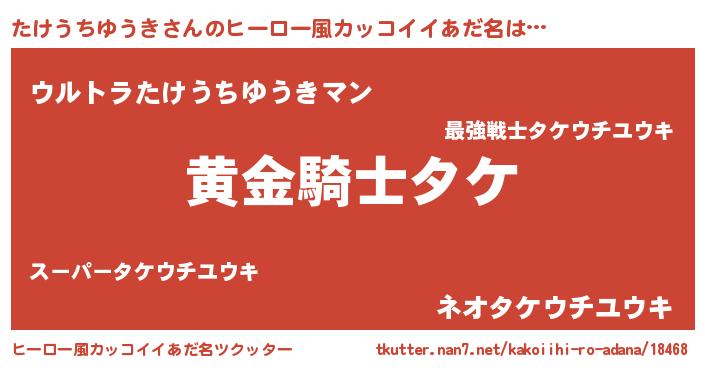 | ポケモン風あだ名 | 『ヒタケウチユウキ』『タケウダネ』 |