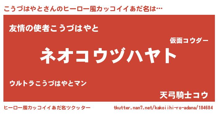 | 胡散臭い通販商品みたいなあだ名 | 『来世でも幸せになれる健康食品…その名も「こうづはやと」』 |