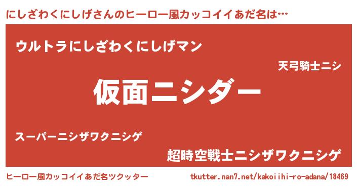 | 男性向けラノベタイトル風あだ名 | 『魔弾の王とにしざわくにしげ』 |