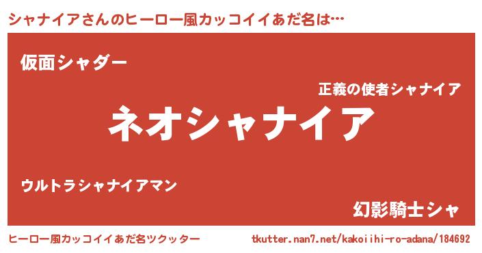 | ヘコむあだ名 | 『シャナイア(震え声)』『シャを』 |