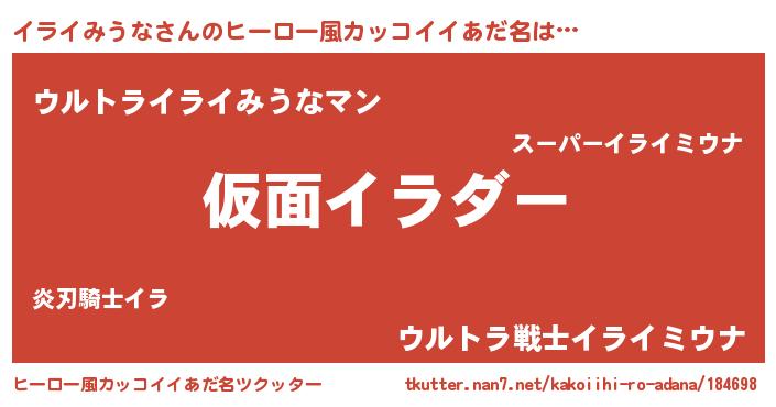 | 意味不明あだ名 | 『住所不定無職イライみうな(77歳)』 |