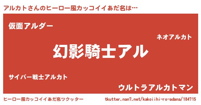 | 女子向けラノベタイトル風あだ名 | 『アルカトの卵を拾いまして』 |