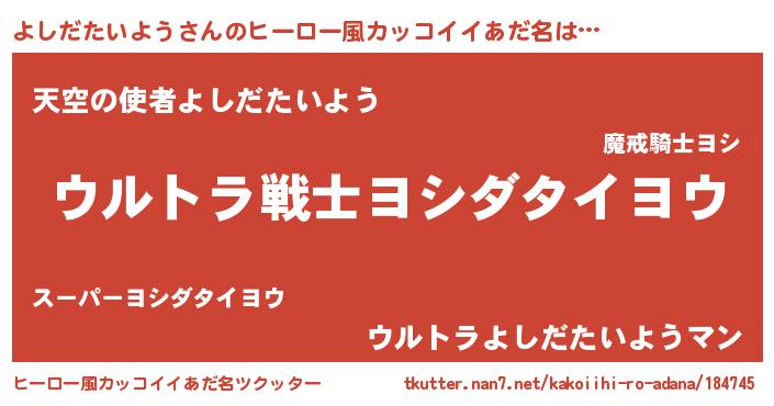 | 意味不明あだ名 | 『自称よしだたいよう』 |