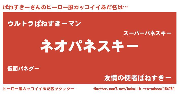 | 男性向けラノベタイトル風あだ名 | 『ぱねすきーという概念が存在しない退屈な世界 』 |
