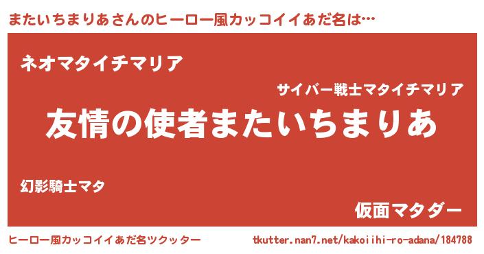 | ヘコむあだ名 | 『またいちまりあ(笑)』『またぷりん』 |