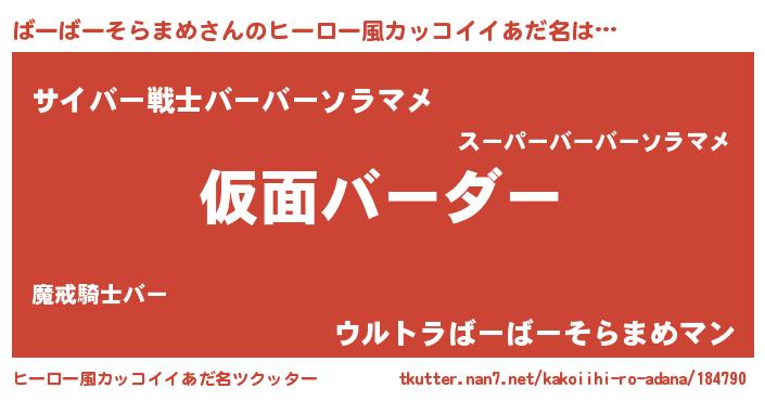 | 欧米人風あだ名 | 『ダレノガレばーばーそらまめ』 |
