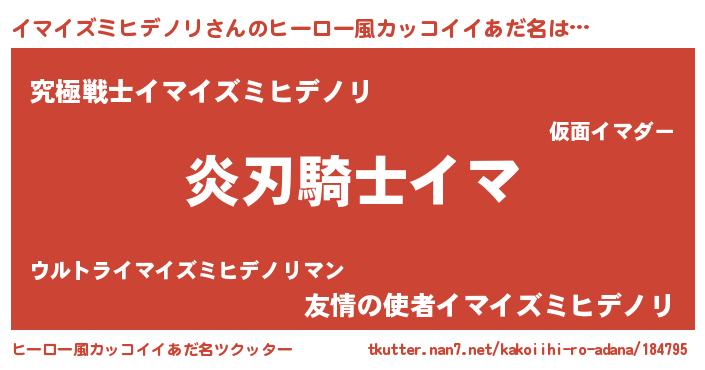 | 男性向けラノベタイトル風あだ名 | 『イマイズミヒデノリ~年齢イコール彼女いない歴の魔法使い~』 |