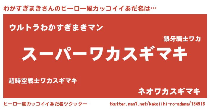 | 男性向けラノベタイトル風あだ名 | 『ワカスギマキアートオンライン』 |