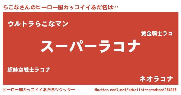 | 男性向けラノベタイトル風あだ名 | 『ラコナアートオンライン』 |