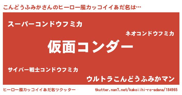 | 男性向けラノベタイトル風あだ名 | 『この素晴らしい世界にこんどうふみかを!』 |