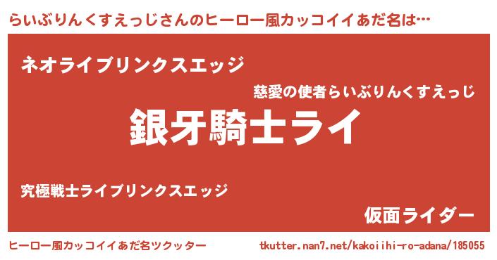 | ヘコむあだ名 | 『らいを』『らいぶりんくすえっじ(遠い目)』 |